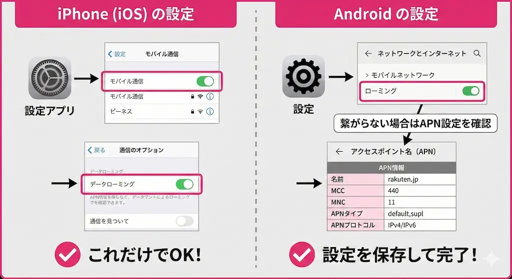 現地に到着したら行うこと|iPhoneとAndroidの設定手順