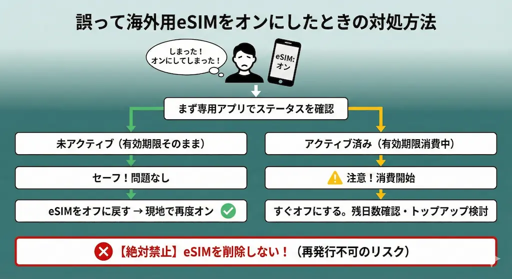 海外旅行のために準備したeSIMを、出国前の日本国内でうっかり「オン」にしてしまい焦っている人は多いはずです。