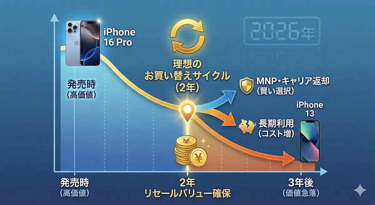 2026年のiPhone運用における最適解は、2年ごとのMNP乗り換えです。